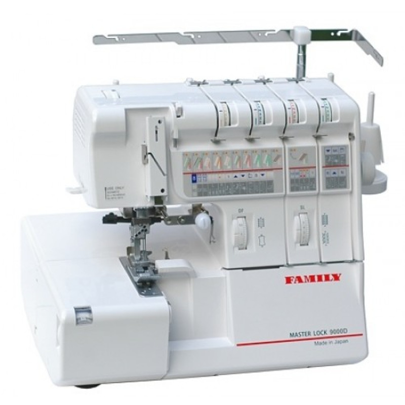 По конструкции эта модель практически идентична коверлоку Janome 1200D, различаются же эти машины в основном набором аксессуаров и ценой. Однако некоторые покупатели отмечают более мягкий и тихий ход Family MasterLock 9000d. Швейные агрегаты, выпущенные под торговой маркой Family, – это разработка известной всем японской компании Janome. В данный момент большинство машин марки Family сходят с конвейеров тайваньского завода компании Janome.