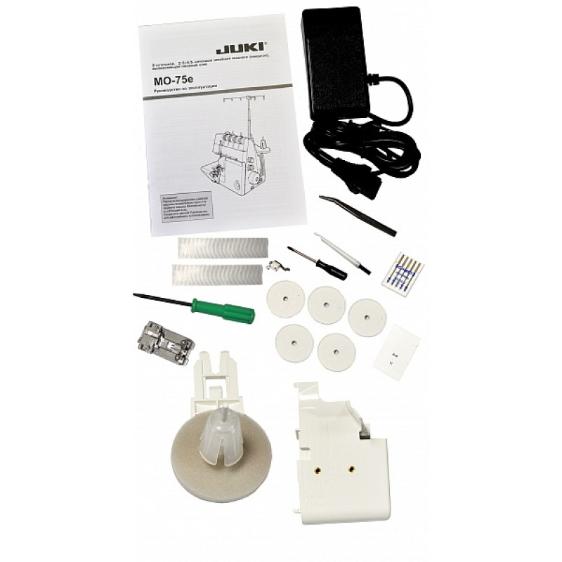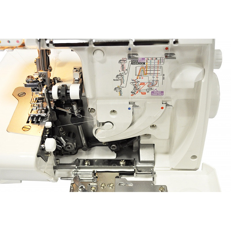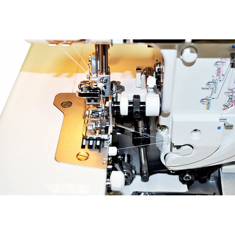 безопасности, система помощи при заправке. Juki MO-75eN совмещает в себе стандартные оверлочные строчки, а также плоский шов.