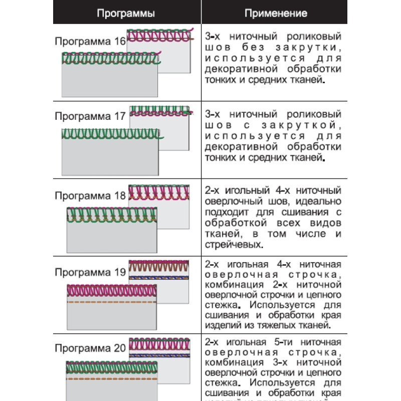 Данный коверлок имеет 20 программ шитья, дифференциальную подачу ткани, увеличенную поверхность шитья.
