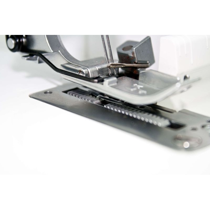 Дифференциальная подача ткани разглаживает все складки во время обмётывания тонких эластичных материалов.
