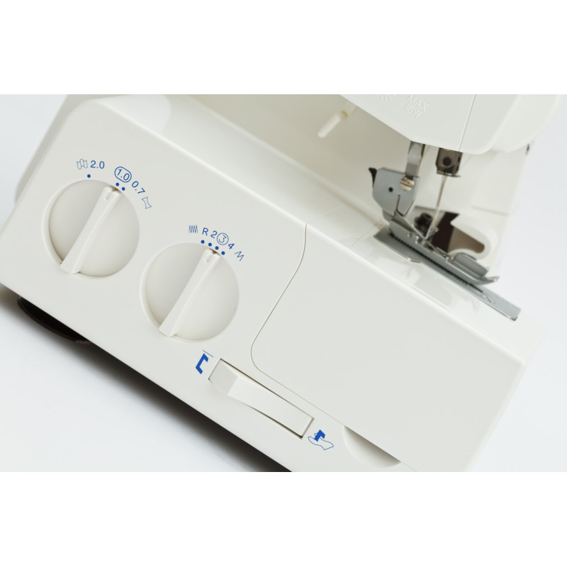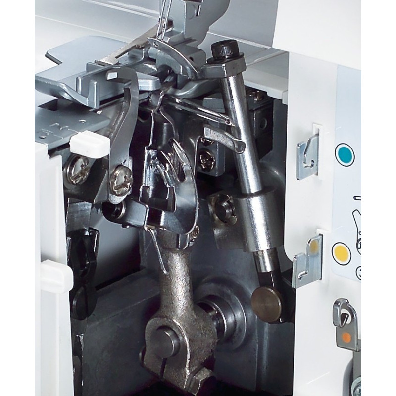 Оверлок снабжён мощной лампой подсветки рабочего стола, съёмной рукавной платформой, и автоматическим заправщиком левого петлителя. Удобное крепление упрощает замену его лапок.