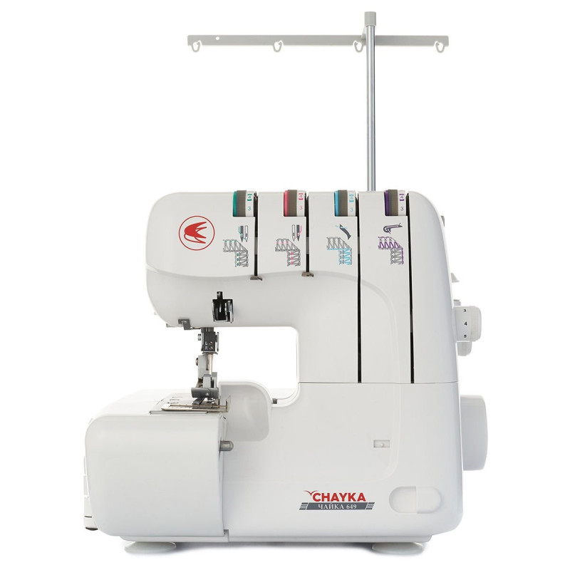 Если оверлок отпугивает сложной системой заправки нитей, то рекомендуем к работе CHAYKA (ЧАЙКА) 649. С помощью вспомогательных рычагов и съемной рукавной части вы легко сможете выполнить самую трудоемкую часть — заправить петлители.