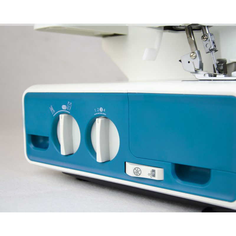 Цветная разметка Aurora 740D на корпусе поможет быстро заправить машину. Предусмотрена ручная настройка давления лапки и подбор дифференциальной подачи для работы с разными материалами. Удобная функция «Свободный рукав» позволяет без усилий обметать узкие элементы: манжеты, отвороты брюк. С завода идет мусоросборник.
