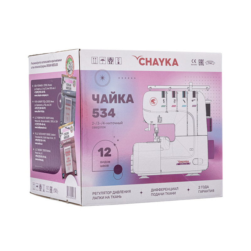 Chayka 534 - это современный и мощный 2/3/4-ниточный оверлок, который выполняет 12 видов швов!