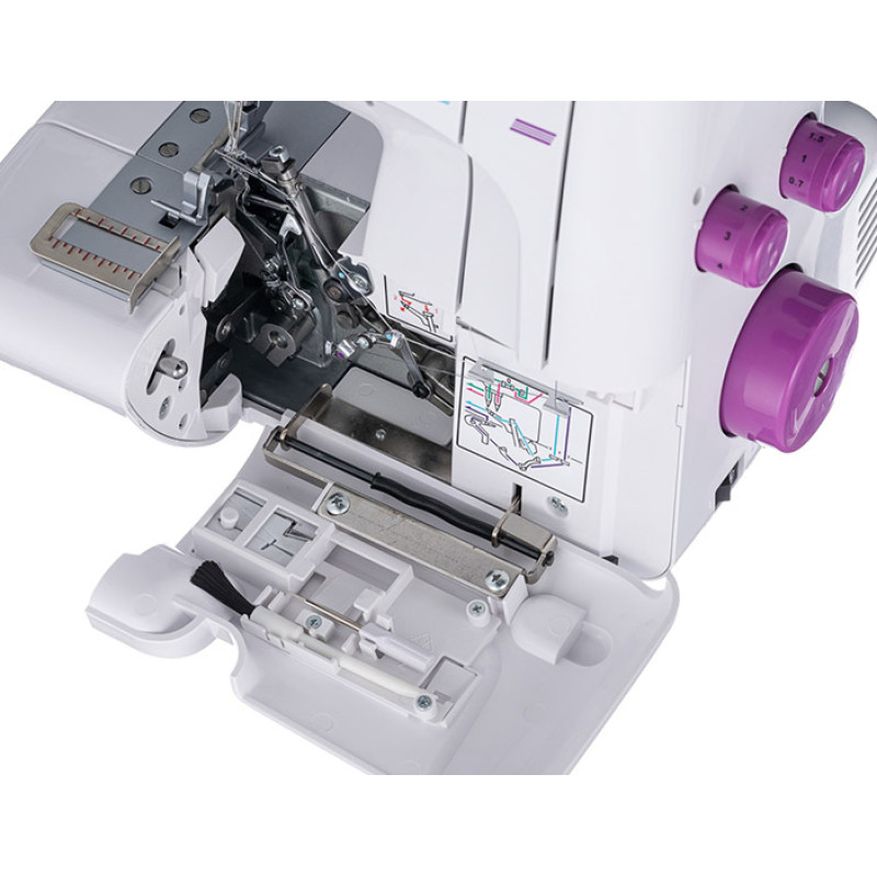 С помощью дифференциальной подачи ткани у Chayka 534 и регулировки давления лапки на ткань вы сможете работать с любыми типами тканей, в том числе с трикотажем, бифлексом и спандексом. Для облегчения заправки нитей на передней панели оверлока находится схема, на которой каждая нить выделена цветом и указана очередность заправки. Регуляторы натяжения нитей удобно расположены на уровне глаз. Благодаря полностью открывающейся боковой панели можно получить свободный доступ к петлителям для заправки ниток, что делает заправку оверлока очень простой. В данной модели можно регулировать ширину обрезки ткани и отключать нож. В комплектацию к этой модели входит мусоросборник. Оверлок CHAYKA NEW WAVE 777 станет незаменимым дополнением к вашей швейной машине.