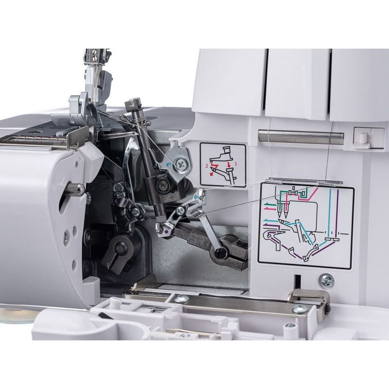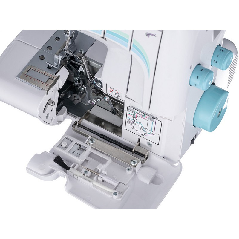 Благодаря дифференциалу подачи ткани у Chayka New Wave 777 и регулировки давления лапки на ткань вы сможете работать с любыми типами тканей, в том числе с трикотажем, бифлексом и спандексом. Для облегчения заправки нитей на передней панели оверлока находится схема, на которой каждая нить выделена цветом и указана очередность заправки. Регуляторы натяжения нитей удобно расположены на уровне глаз. Благодаря полностью открывающейся боковой панели можно получить свободный доступ к петлителям для заправки ниток, что делает заправку оверлока очень простой. В данной модели можно регулировать ширину обрезки ткани и отключать нож. В комплектацию к этой модели входит мусоросборник. Оверлок CHAYKA NEW WAVE 777 станет незаменимым дополнением к вашей швейной машине.