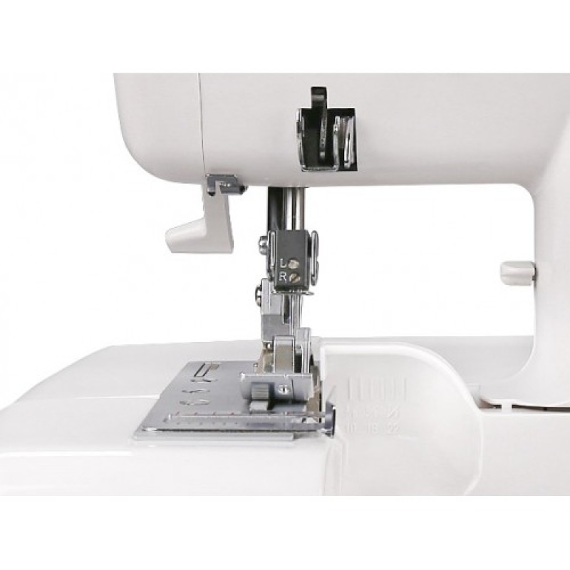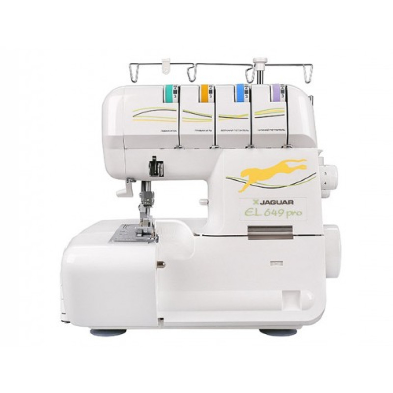 Основные ходовые детали прикреплены на стальную раму, что увеличивает долговечность конструкции в несколько раз. Для повышения работоспособности механизмов используется графитовая смазка. Jaguar EL 649 Proвыполняет 11 видов швов с использованием 2-х, 3-х и 4-х нитей. Тип ткани не имеет значения: швейная машина от компании Jaguar замечательно справляется и с лёгким шифоном, и с плотной одеяльной материей.
