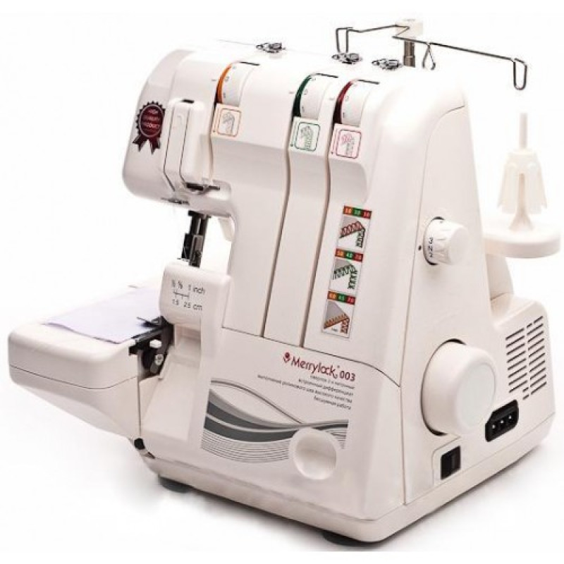 Merrylock 003 – краеобметочная машина, выпускаемая тайваньской компанией швейной техники. Данная модель оверлока – новинка 2012 года. Она выполняет 3-х ниточный оверлочный и ролевой шов, что вполне достаточно для бытового использования. Поскольку абсолютное большинство строчек швейных изделий выполняются именно 3-х ниточным оверлочным швом, то, имея добротную швейную машину и оверлок Merrylock 003, можно справиться с 80% швейных работ.