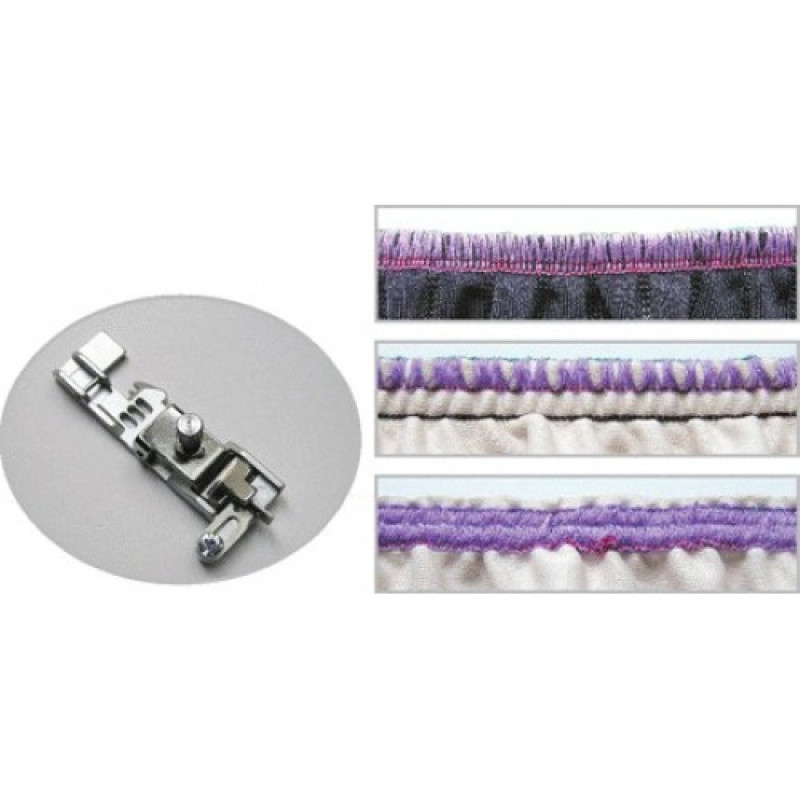 Но этот же эффект можно применить для обработки тонких вязаных тканей и получить сборки. Для окантовки воротников, рукавов, при отделке оборками или тесьмой тоже используется собирание в сборки. Таким образом, оверлок Merrylock 003 действительно имеет широкий диапазон применения.