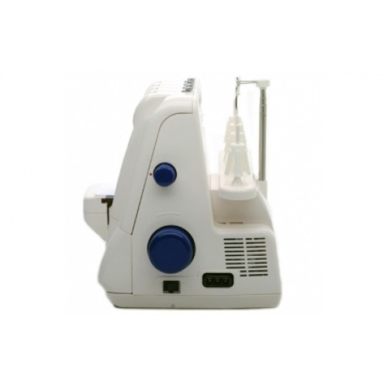 Merrylock 010 оснащен такими функциями, как 4х и 3х-ниточная строчка, ролевой шов, flatlock, заправщик нижнего петлителя, отключение ножа, регулировка прижима ткани и ширины ее обреза, встроенное освещение, что дает возможность в любое время суток освещать рабочую поверхность, цветные регуляторы натяжения, регулятор дефииринциала позволяет либо растягивать, либо присобирать ткань, максимальная скорость шитья – 1300 стежков в минуту.