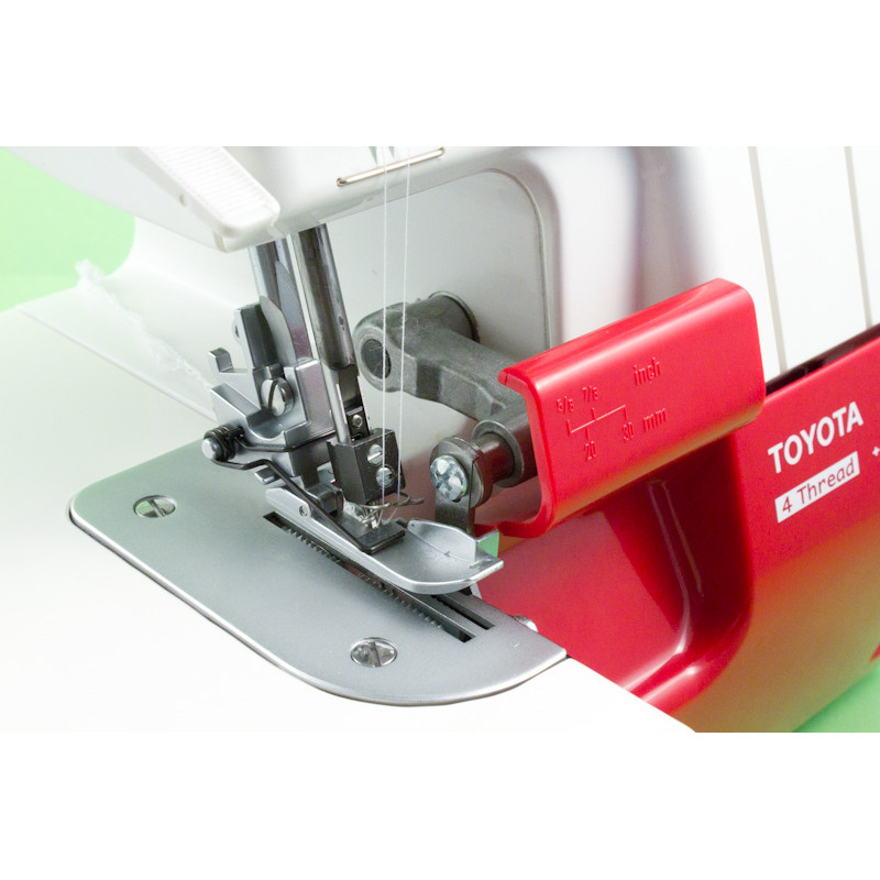 Toyota SLR4D производит обметочные швы при помощи 3-х и 4-х нитей. Данная машина совершает за минуту 1500 оборотов, длина стежка может варьироваться от 1мм до 5 мм. Ширина обметочной строчки может быть от 4 до 6 мм. Ручной контроль управления нить, позволяет производить натяжение нитей, так как вам нужно. Ровная подача материала дает великолепный результат в независимости от его вида. Такая функция как настройка ширины обметочной строчки дает возможность, создавать ее на материи разной толщины и качества.