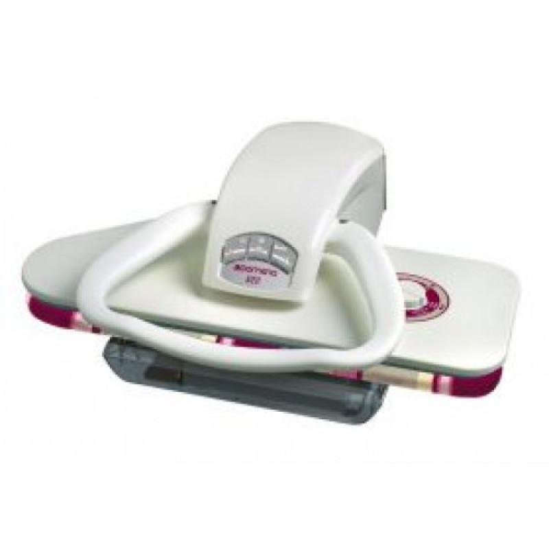 - на рабочей поверхности пресса, имеющей размер 68х25 см, удобно расположить постельное и столовое белье. Автоматическое давление 45 кг позволяет проглаживать одновременно до шести слоев ткани.