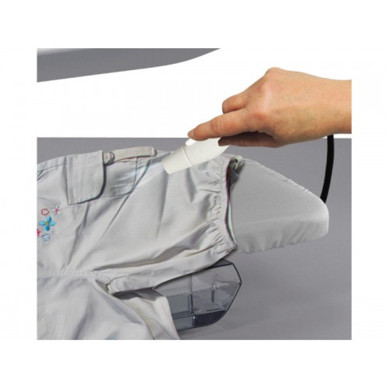 На рабочей поверхности пресса, имеющей размер 66*25 см, удобно расположить постельное и столовое белье. Автоматическое давление 45 кг позволяет проглаживать одновременно до шести слоев ткани.