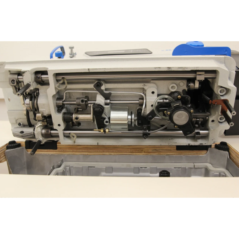 Швейная автоматическая машина с нижним продвижением, встроенным в головку сервоприводом для средних и тяжелых материалов.
