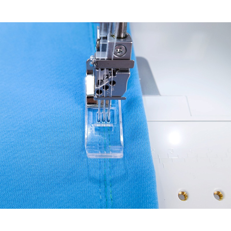 - 7 видов швов: 3х-игольный распошивальный, 2х- игольный широкий (левая и правая игла), 2х- игольный узкий (левая и центральная игла), 2х- игольный узкий (правая и центральная игла), цепной стежок (левая игла), цепной стежок (центральная игла), цепной стежок (правая игла)