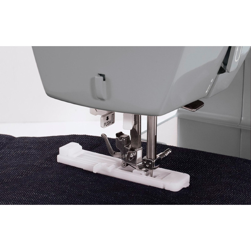 | Комплектация с завода | Универсальная лапка Лапка для вшивания молнии Рамка для полуавтоматической петли Лапка для пришивания пуговиц Штопальная пластина Направитель для квилтинга Шпульки пластиковые 4шт. (3 шт. и 1 в машине) Набор игл 3 шт. Вспарыватель Отвертка-ключ Масленка с маслом Держатель катушки большой Держатель катушки малый Вертикальный катушечный стержень Фетровая прокладка Мягкий чехол |