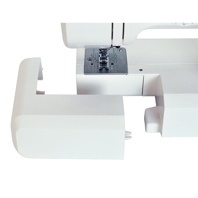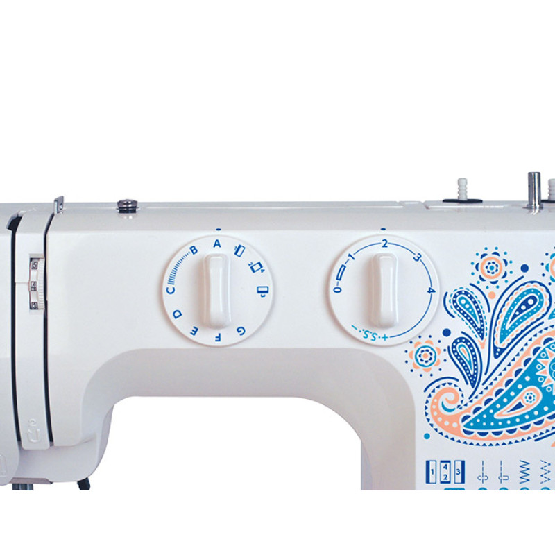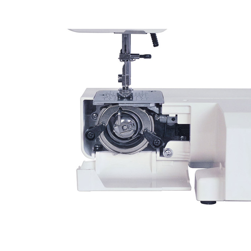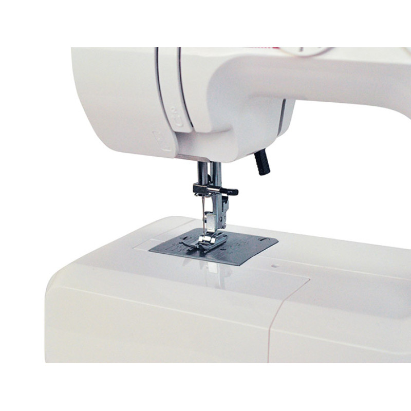 Швейная машина выполняет 15 швейных операций и имеет рукавную платформу, которая поможет с легкостью обработать штанины брюк, или же рукава рубашки. Эта электромеханическая модель имеет в своём запасе все самые необходимые швейные функции и операции: рабочие, трикотажные, потайные, оверлочные строчки, а также петлю-полуавтомат.