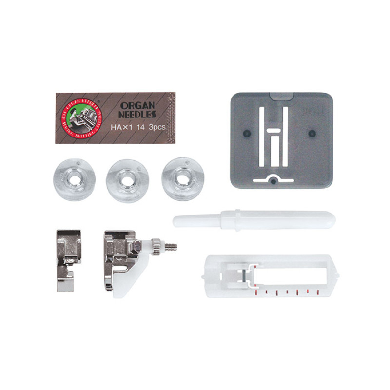 | Комплектация с завода | Лапка универсальная. Лапка для молнии. Лапка для потайного шва. Рамка для петли. Вспарыватель. Отвертка. Набор игл. Штопальная пластина. Шпульки. Педаль. Инструкция на русском языке. |