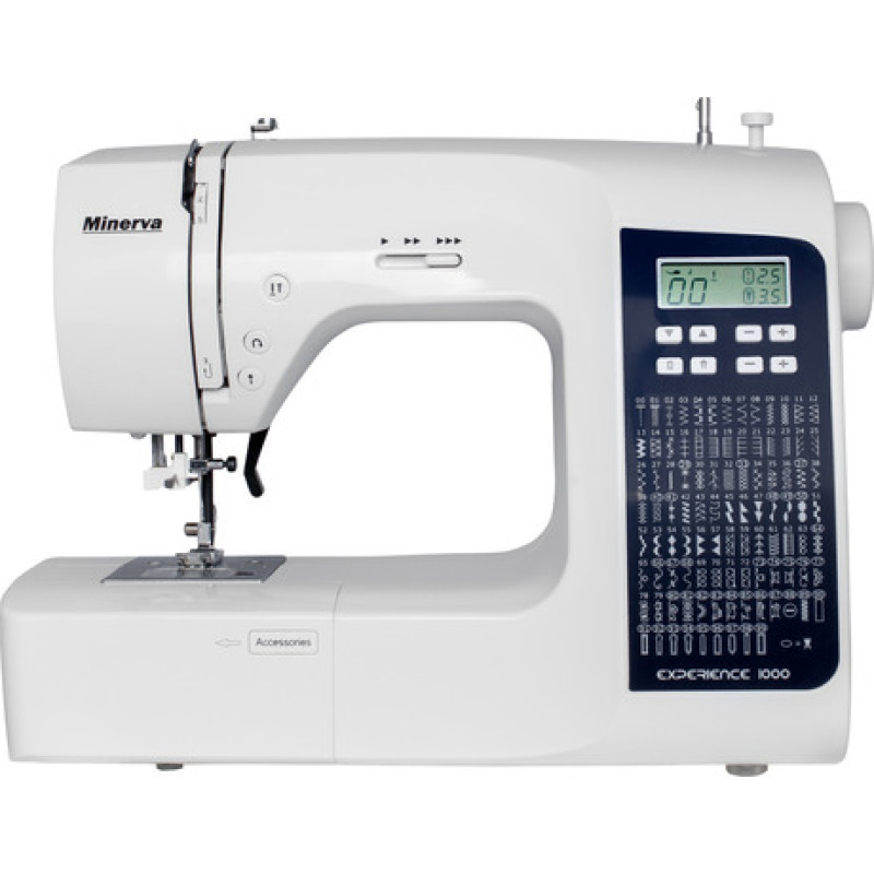 Minerva Experience 1000 снабжена кнопочной панелью управления с удобным дисплеем. Удобно переключение строчек ,а также оптимальный выбор длины и ширины стежка .