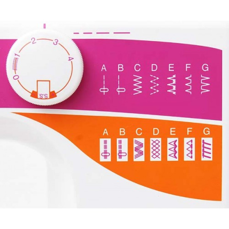 - 15 видов стежков, в том числе: петля полуавтомат, прямая, зигзаг, потайной стежок, оверлочные, трикотажные, декоративные, эластичная, эластичная потайная