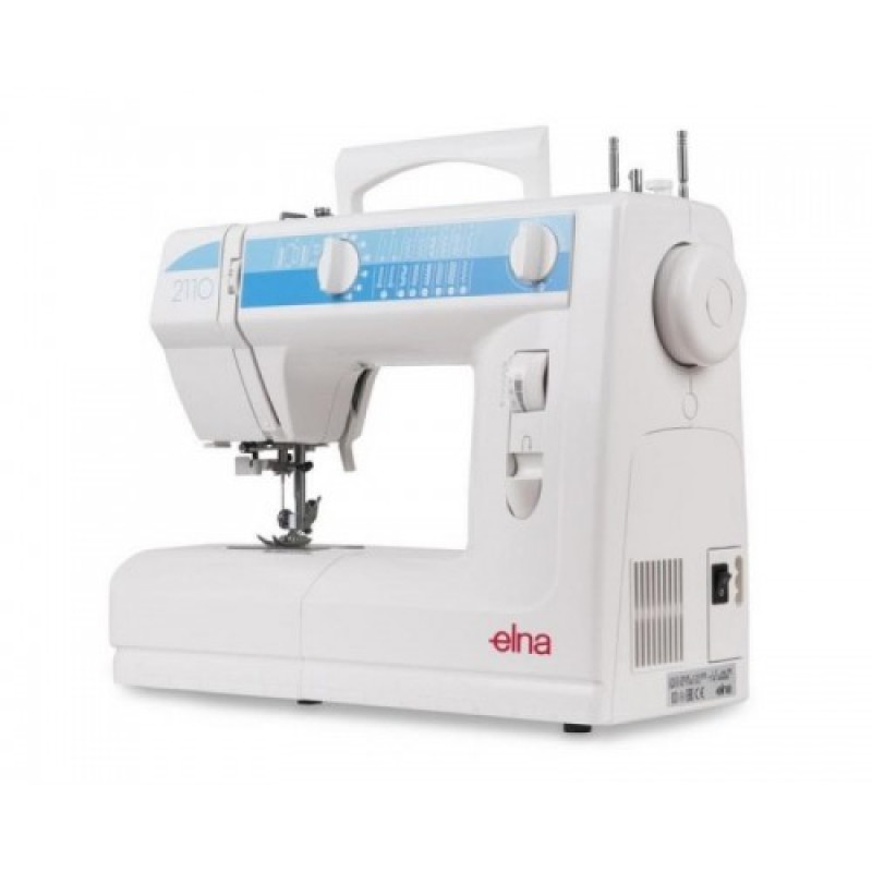 Швейная машина Elna 2110 – небольшая, отлично отлаженная машина для повседневных нужд и регулярного пошива. Особенность и быстрота действий – 800 стежков за минуту. Конструктивно продумано встроенное хранение лапок, катушек, игл, отвертки, превосходных челноков, булавок, шпулек, установленных на фронтальной поверхности машины.