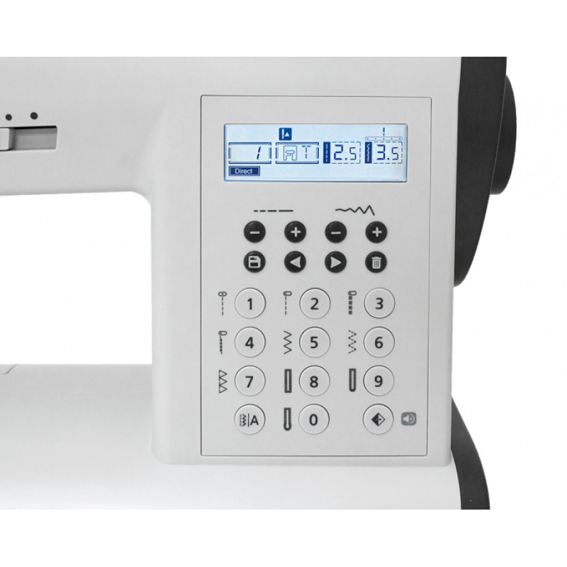 Управляйте Family 200 Pro с помощью нескольких нажатий кнопок. Дисплей позволяет видеть параметры строчки, отображает настройку различных функций. Помимо простого ввода номера выбранной строчки вы можете изменить ее ширину и длину стежка, которые устанавливаются автоматически. Также на панели вы найдете ряд кнопок для быстрого перехода к наиболее востребованным швейным операциям.