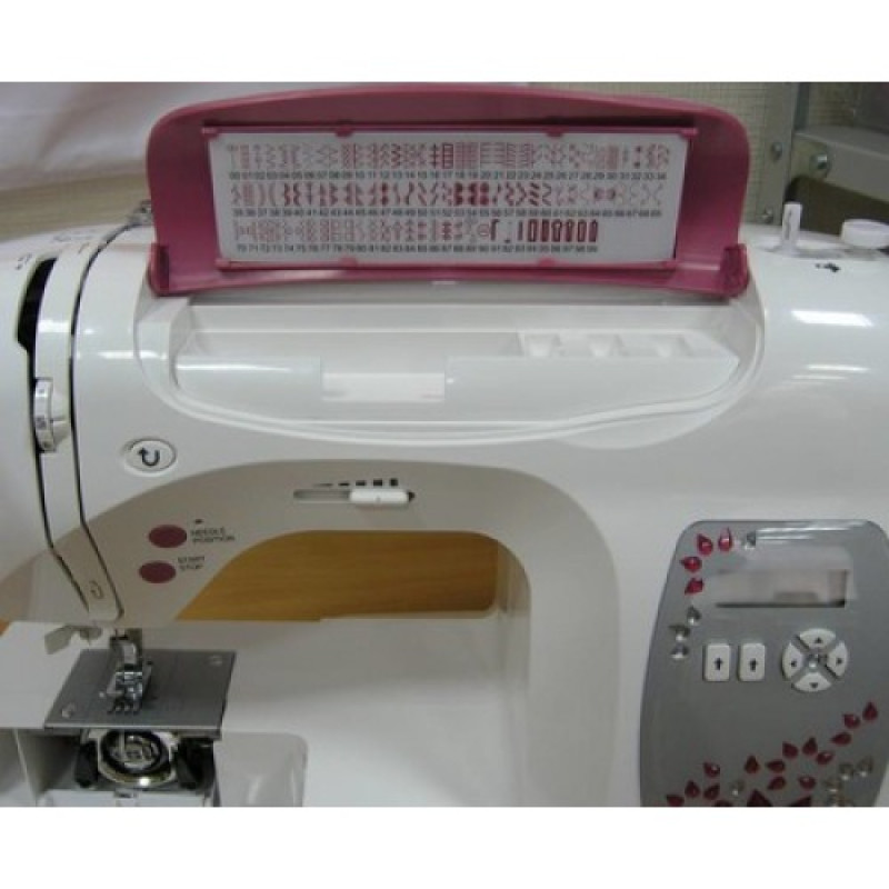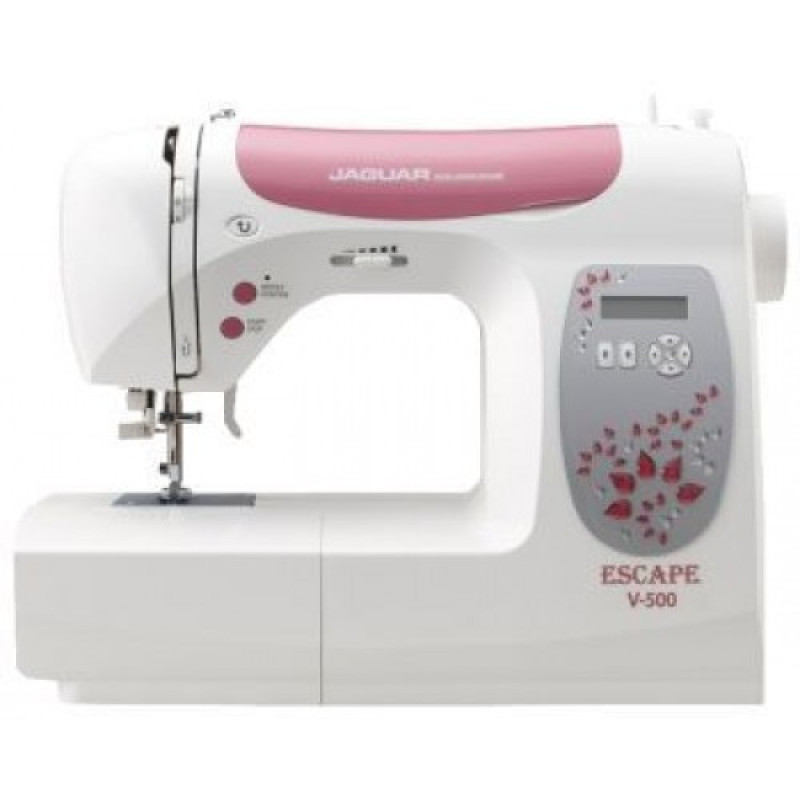 Также Jaguar V-500 оснащена кнопками «Обратный ход иглы» для усилительной закрепки и «Позиция иглы» (верхнее и нижнее положение). Швейная машинка Jaguar V-500 эксплуатируется с помощью педали и без, т.е. с кнопкой «Старт/Стоп». Оснащена ЖК-дисплеем, яркой светодиодной подсветкой для работы в вечернее время и чехлом для хранения. Украшена кристаллами.