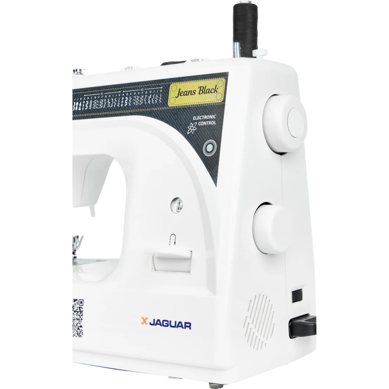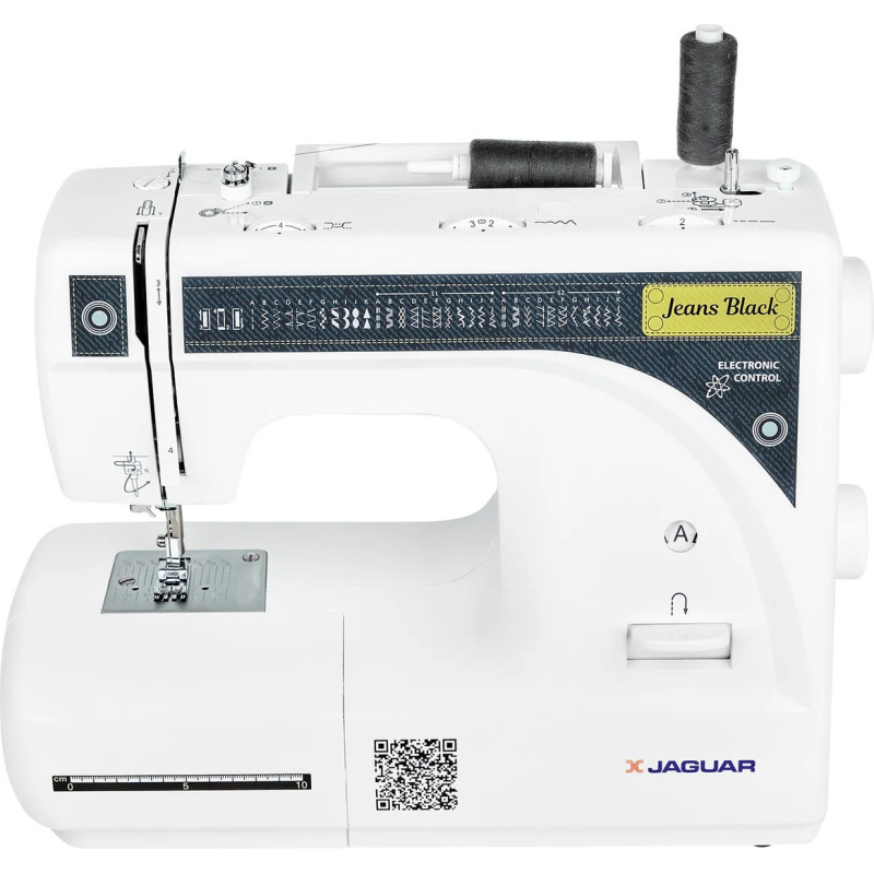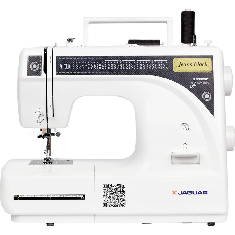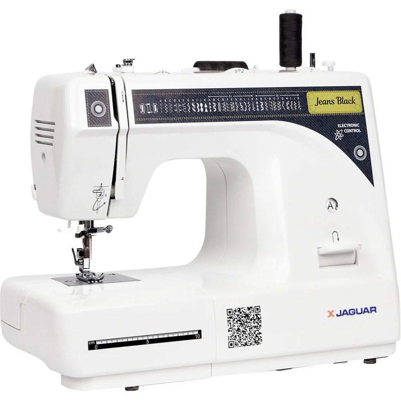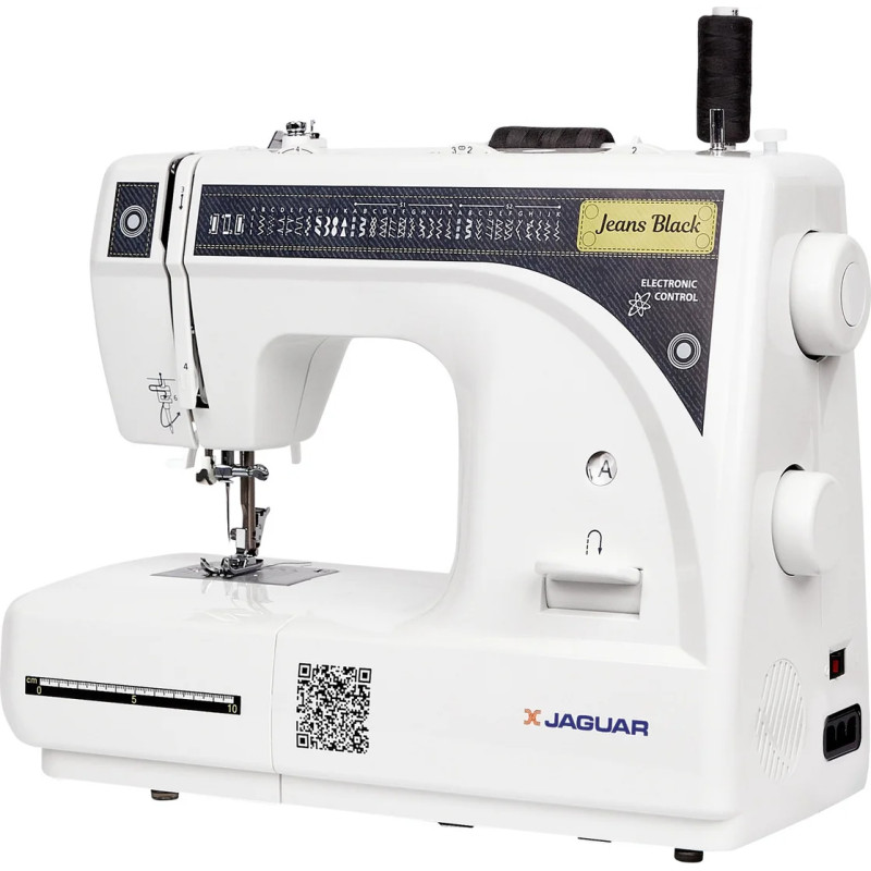 Мощная и элекгантная электромеханическая швейная машина Jaguar Jeans Black с вертикальным металлическим челноком сможет заменить вам любую другую швейную машину. Идеальным зигзагом можно аккуратно пришить резинку, предлагаются строчки и для любителей квилтинга. Петли для пуговиц вымётываются в полуавтоматическом режиме за 4 шага.