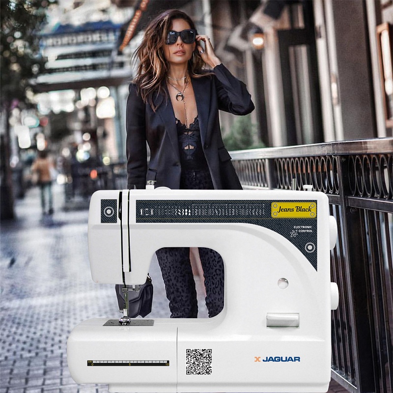 С помощью давления лапки на ткань Jaguar Jeans Black может шить любые типы тканей, тяжёлые, плотные, джинсовые и сложные трикотажные.