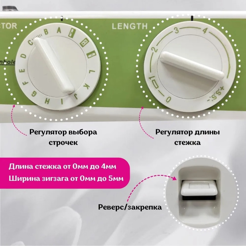Плавная регулировка ширины стежка до 4мм и максимальная ширина строчки - 5мм для достижения желаемого результата.
