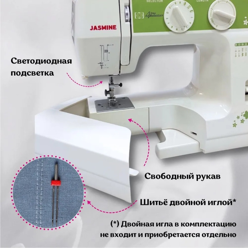 Jasmine J-395 — современная, стильная и мощная швейная машина с обширным набором функций.