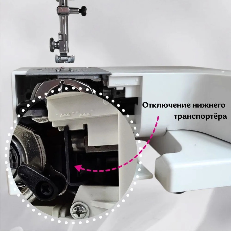 Свободный рукав поможет при работе с узкими и круглыми изделиями, такими как манжеты, рукава, горловина и другие.