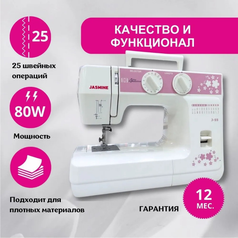 Jasmine J-55 — новинка, которая удивит всех любителей шить. Это современная и мощная швейная машина с большим набором операций.