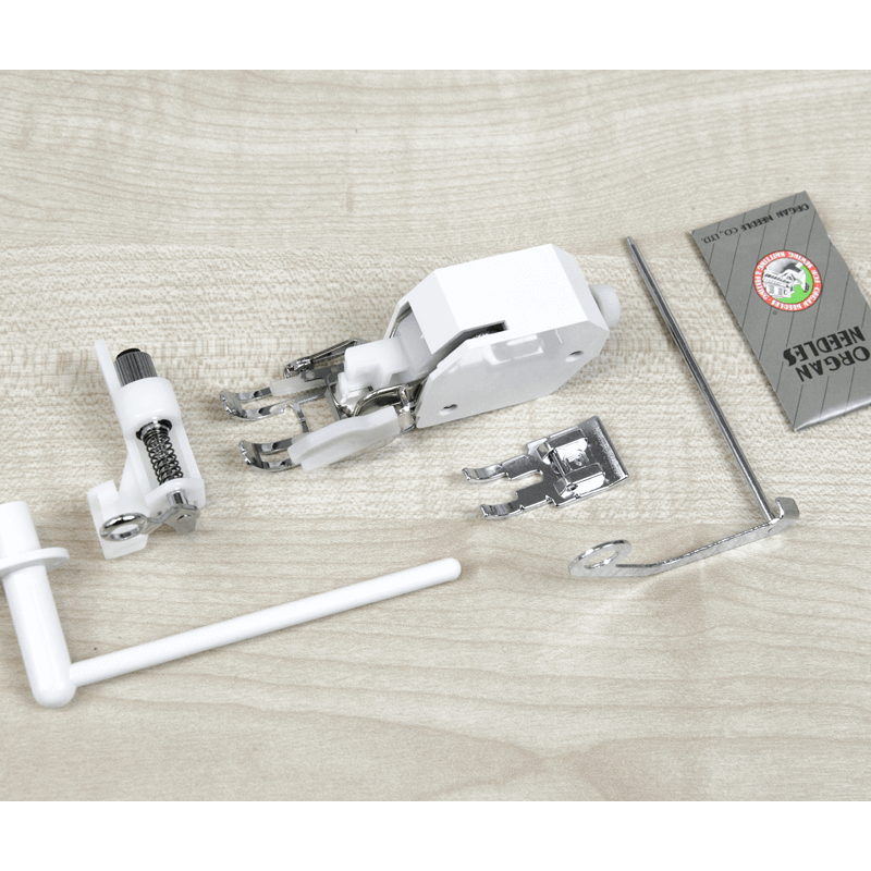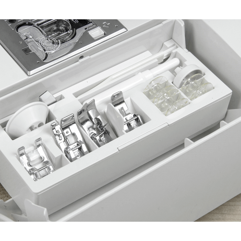 | Комплектация с завода | Двойная игла; Инструкция на русском языке; Иглы; Распарыватель; Чехол (жесткий); Шпульки; Щеточка для очистки; Катушкодержатель дополнительный; DVD Лапки в комплекте: Лапка для обметывания петель; Лапка двухсторонняя для вшивания молний, трубчатой тесьмы и шитья по краю; Лапка для обработки края; Лапка для потайного шва; Лапка для пэчворка и квилтинга; Шагающая лапка |