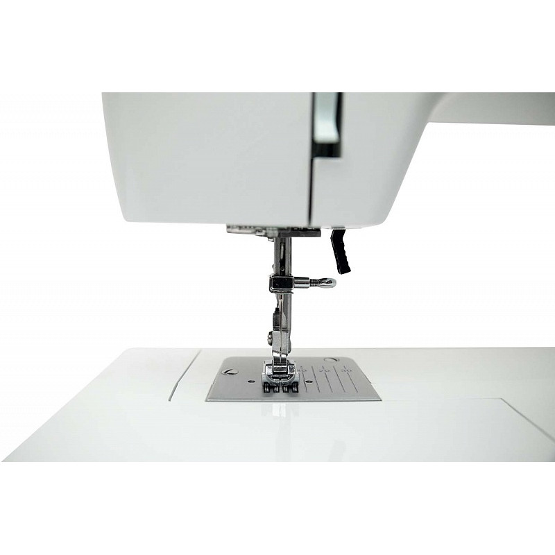 22 самые необходимые швейные операции: прямая строчка, трикотажные строчки, зигзаг, эластичный зигзаг, пунктирный зигзаг (используют для пришивания резинки), строчка для квилтинга, потайные строчки, оверлочные и декоративные строчки, петля для пуговиц выполняется в полуавтоматическом режиме. Все эти операции, расширяют диапазон шитья с различными типами тканей. Вы можете шить шёлк, драп, трикотаж, джинсу сложенную в несколько сложений. Максимальный подъём лапки - 13 мм. Используя второй катушечный стержень шейте двойной иглой. Двойная игла приобретается дополнительно. В швейной машине Leader Foxtrot при намотке нити на шпульку срабатывает автоблокировка игловодителя.