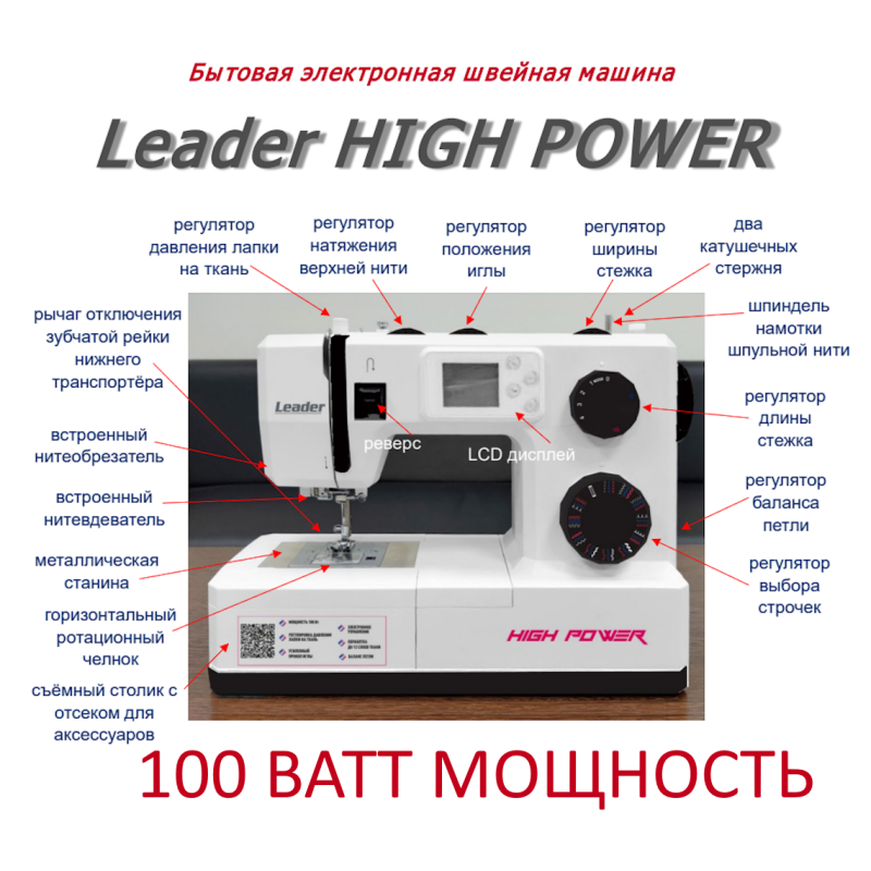 Leader HIGH POWER - швейная машина с мощностью 100 Ватт.