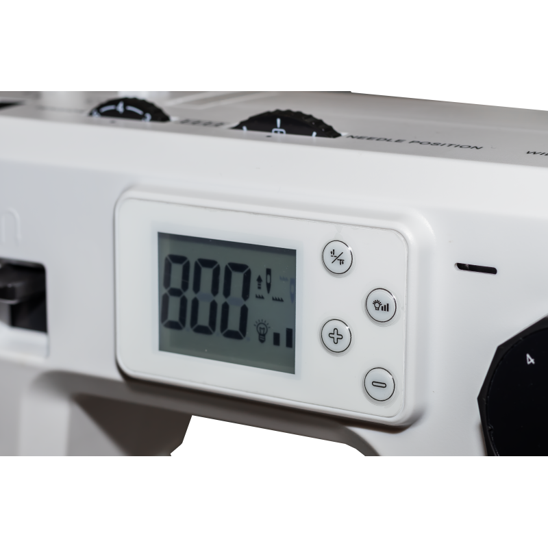 Регулировка скорости шитья. Минимальная скорость шитья - 20 об./мин. Максимальная скорость шитья - 800 об./мин.;