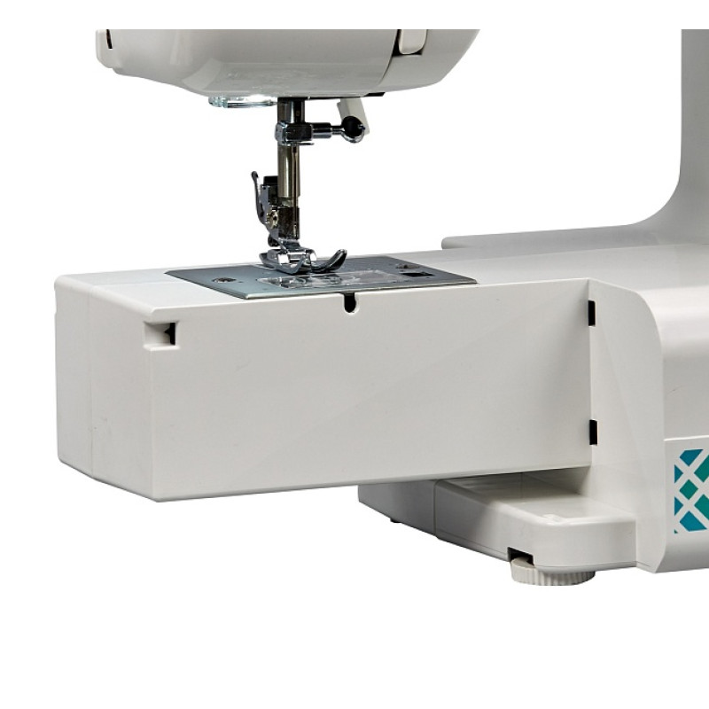 Сняв съёмный столик, в пенале которого хранится вся комплектация, удобно прошивать круговые изделия (рукава, брючины, мелкие изделия).