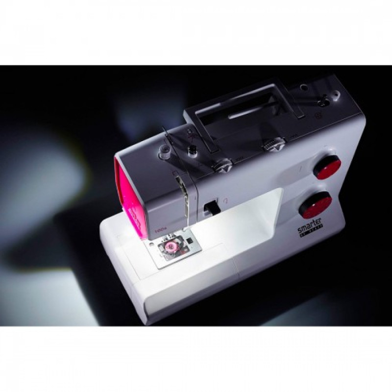 Pfaff Smarter 160 S – швейная машинка с горизонтальным челноком, 23-мя швейными операциями, авто /выметыванием петли под размер пуговицы. Нитевдеватель поможет продолжить работу быстро при обрыве нити, а регулятор давления лапки на прошиваемые материалы необходим для успешной работы с тканями различной толщины.