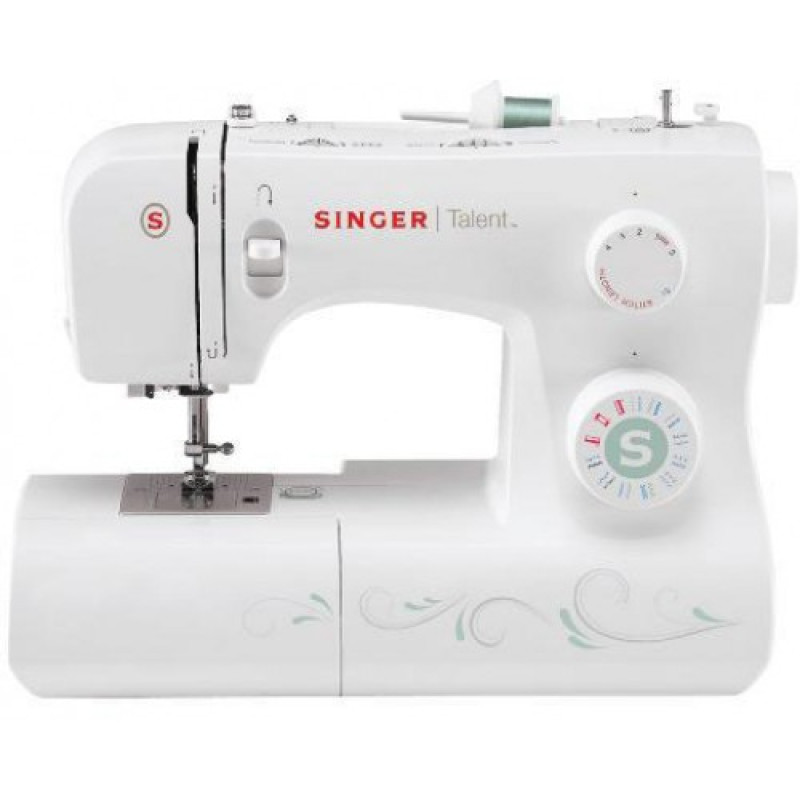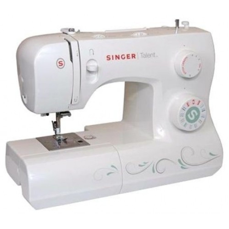 SINGER Talent 3321 – бытовой агрегат, относящийся к классу электромеханических швейных машин. Простая, надежная и доступная по цене модель для семьи. При этом достаточно функциональна – выполняет все самые необходимые операции: подшивает потайным швом низ, обрабатывает края зигзагом и