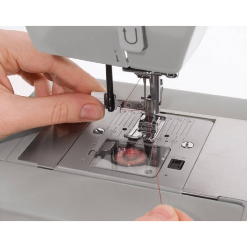 Встроенный нитевдеватель - очень полезный элемент машины. Ваши глаза больше не будут уставать - просто заправьте нить в иглу с помощью нитевдевателя и начните шить!