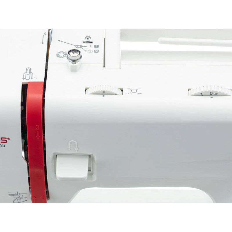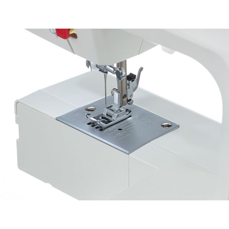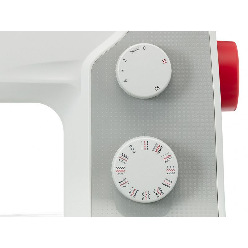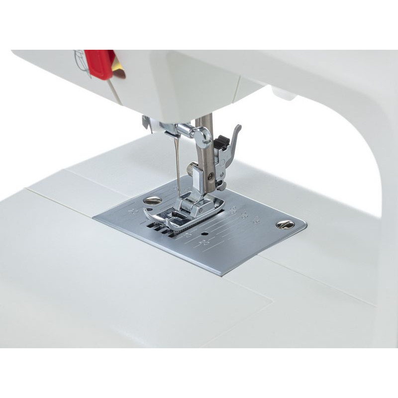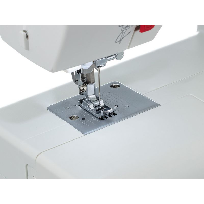 | Комплектация с завода | Универсальная лапка Лапка для автоматической петли Лапка для вшивания молнии Лапка для пришивания пуговиц Роликовая лапка Приспособление для трудных мест Штопальная пластина Направитель для квилтинга Шпульки Держатель катушки большой Держатель катушки малый Вертикальный катушечный стержень Фетровая прокладка Вспарыватель/щёточка для чистки пыли Набор игл Отвёртка-ключ Педаль |