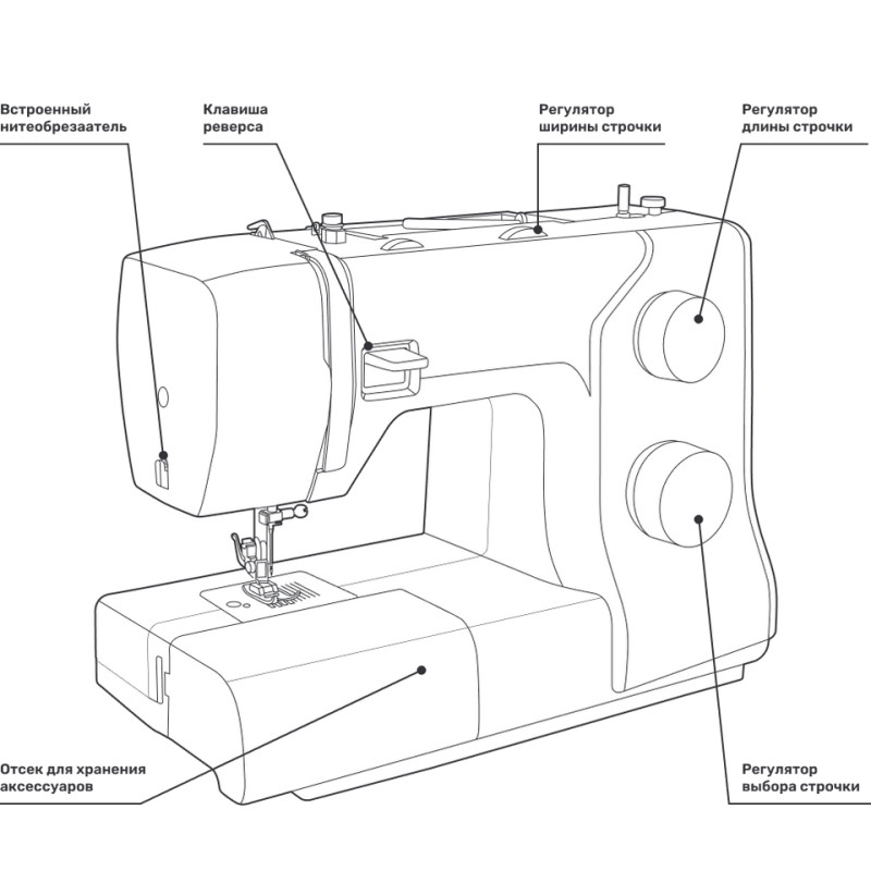 | Виды строчек | Декоративные, зиг-заг, оверлочные, потайные, прямая, эластичные и другие |