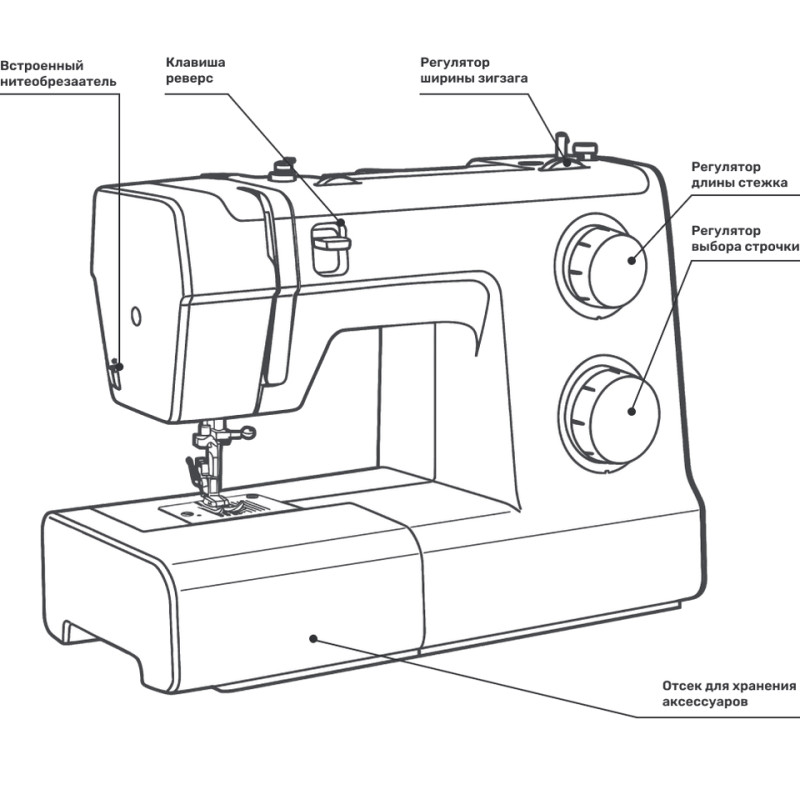 | Виды строчек | Декоративные, зиг-заг, оверлочные, потайные, прямая, эластичные и другие |