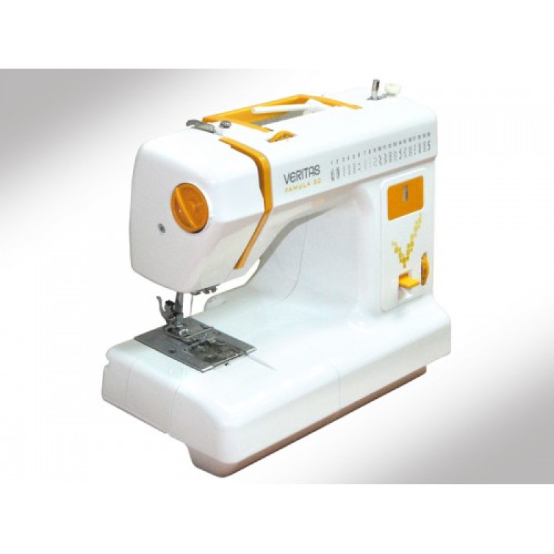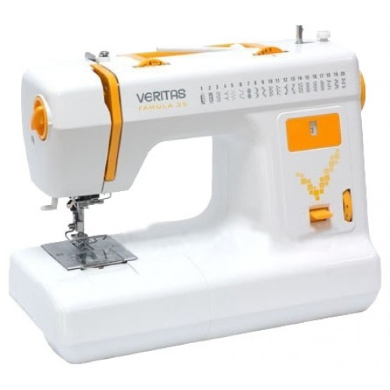Швейная машина Veritas Famula 35 электромеханического типа, удобная и практичная, выполняющая 20 разных швейных строчек и одну полуавтомат - петлю, используется для шитья из средний и тонких по фактуре и плотности тканей. Машина обладает значительной скоростью шитья, легко справляется с задачей по пошиву и ремонту одежды, выполнение декора и украшения текстильных изделий.