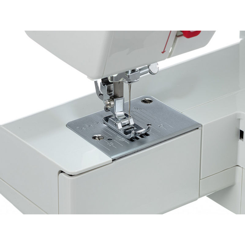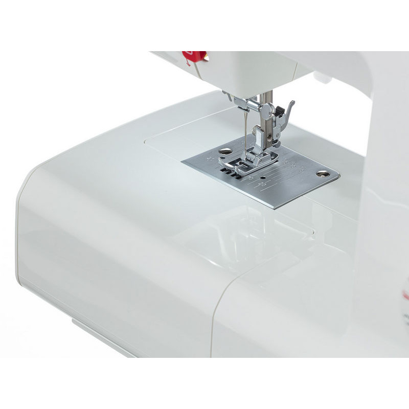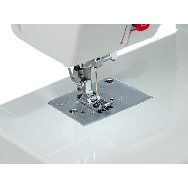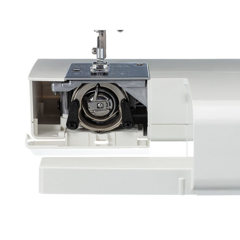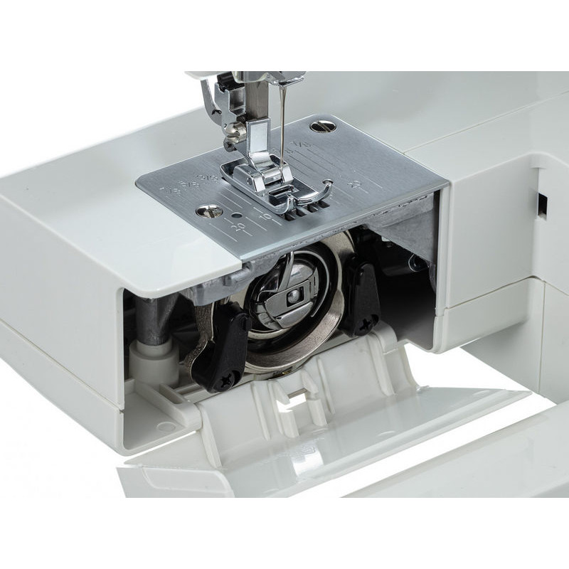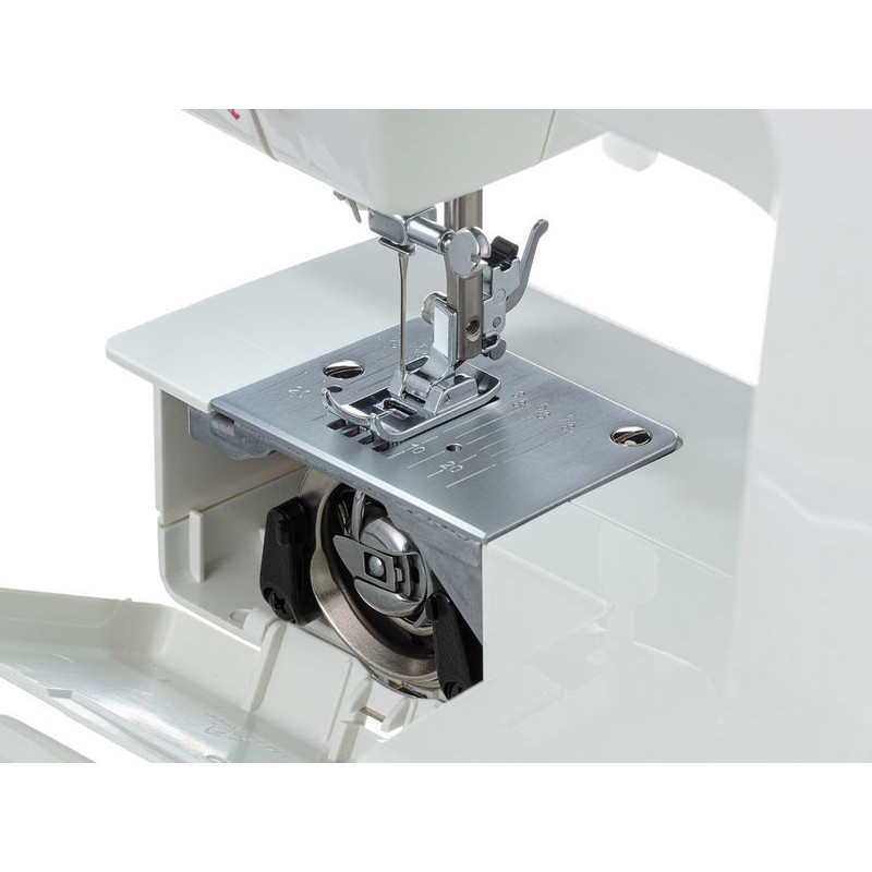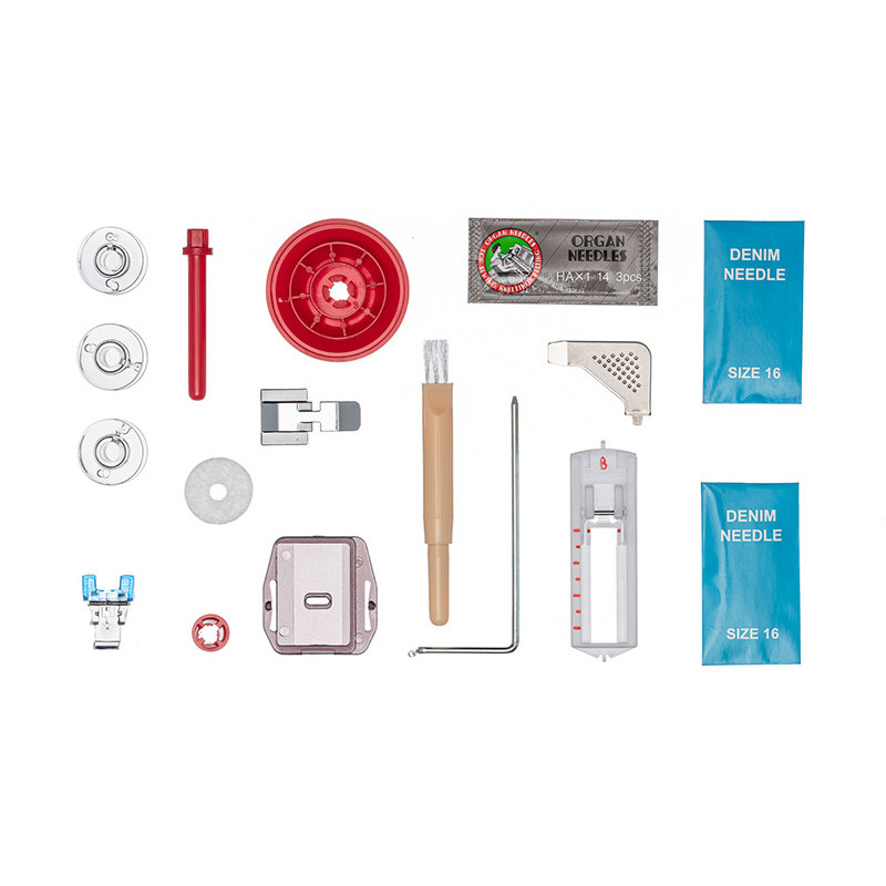 | Комплектация с завода | Универсальная лапка Рамка для полуавтоматической петли Лапка для вшивания молнии Лапка для пришивания пуговиц Штопальная пластина Направитель для квилтинга Роликовая лапка Приспособление для трудных мест Шпульки Держатель катушки большой Держатель катушки малый Вертикальный катушечный стержень Фетровая прокладка Вспарыватель/щёточка для чистки пыли Набор игл Отвёртка-ключ Педаль |