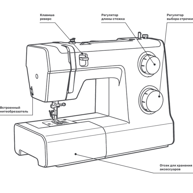 | Вес швейной машины кг. | 6.43 (брутто)/5.6 (нетто) |