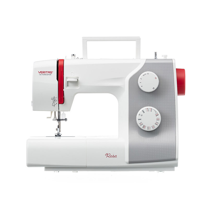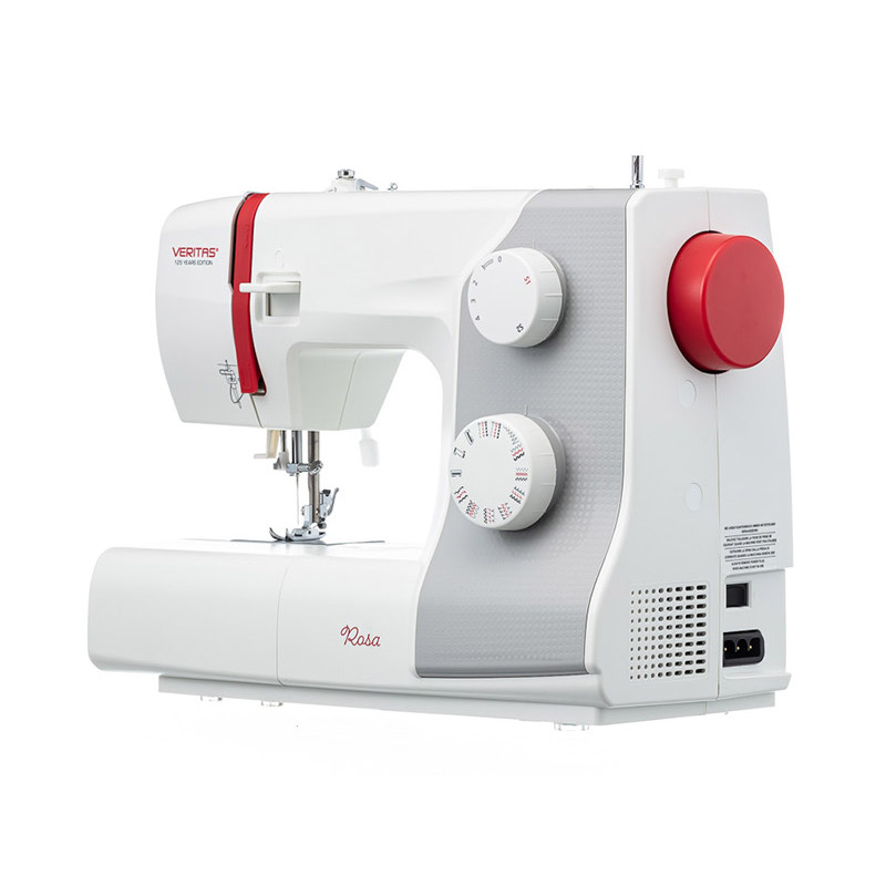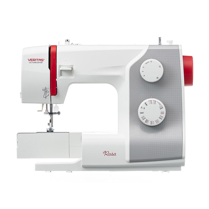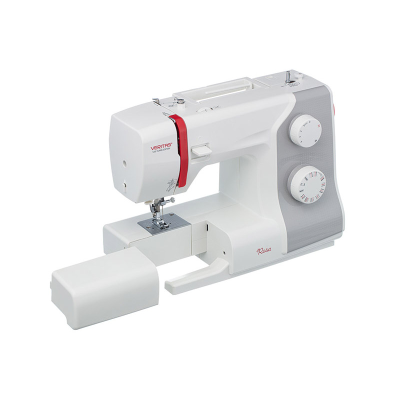 Veritas Rosa - электромеханическая швейная машина, которая выполняет 23 швейные операции. Выбор строчки осуществляется быстро и легко с помощью поворотного регулятора. На машинке можно прошивать широкий диапазон ткани: от шифона до джинсы. Дополнительный подъём лапки позволит шить многослойные изделия. Удерживая клавишу реверс можно шить в обратном направлении, сделать закрепку или выполнить штопку. Все необходимые аксессуары для комфортной работы идут в комплекте вместе с машиной, а хранить их удобно в съёмном отсеке. Veritas Rosa подойдёт, как для новичков только собирающихся освоить мир шитья, так и для более опытных портних.