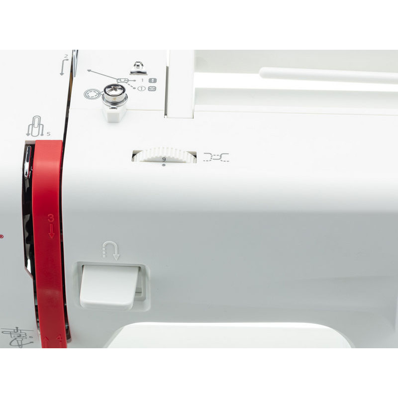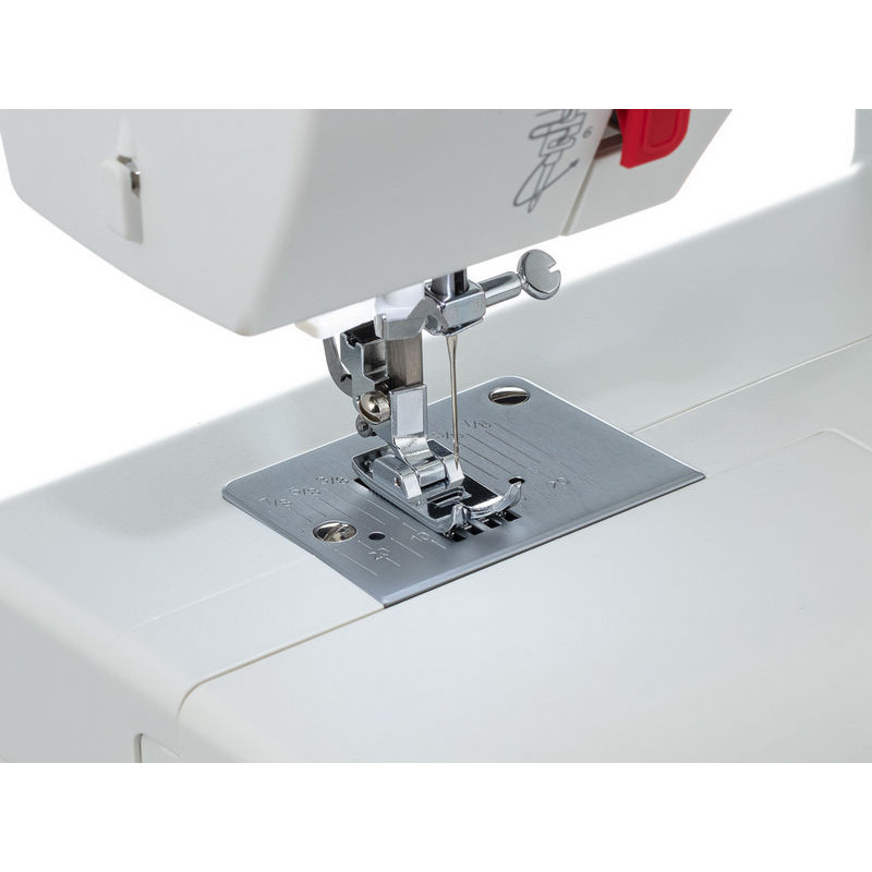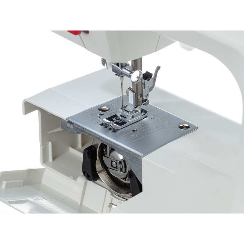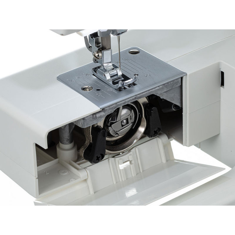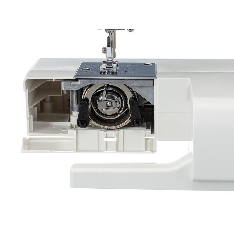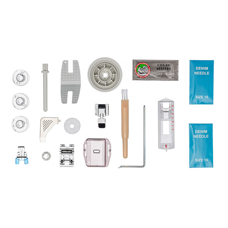 | Комплектация с завода | Универсальная лапка Рамка для полуавтоматической петли Лапка для вшивания молнии Лапка для пришивания пуговиц Штопальная пластина Направитель для квилтинга Роликовая лапка Приспособление для трудных мест Шпульки Держатель катушки большой Держатель катушки малый Вертикальный катушечный стержень Фетровая прокладка Вспарыватель/щёточка для чистки пыли Набор игл Отвёртка-ключ Педаль |