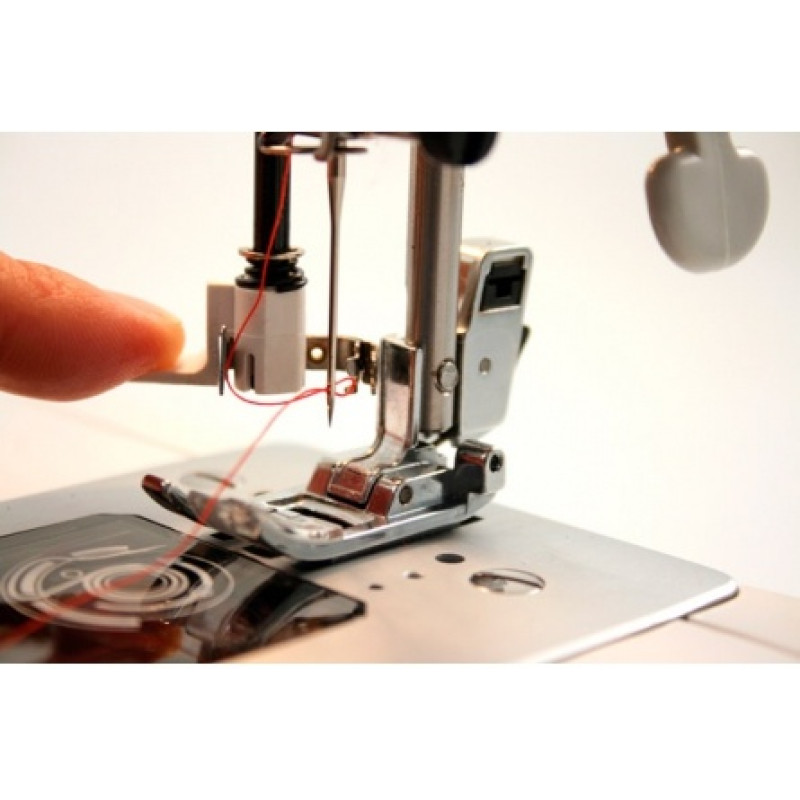 В арсенале машинки 26 швейных операций. В их числе полуавтоматическая петля (не волнуйтесь, от фабричной ее не отличить), прямые рабочие строчки, зигзаг, имитация оверлочного шва, потайные, декоративные и строчки для работы с трикотажем. Для тех, у кого есть дети, полезной будет и строчка для пришивания аппликаций. Выбрать нужную операцию можно при помощи удобного дискового регулятора. Не запутаться в разнообразии поможет швейный советник на корпусе.